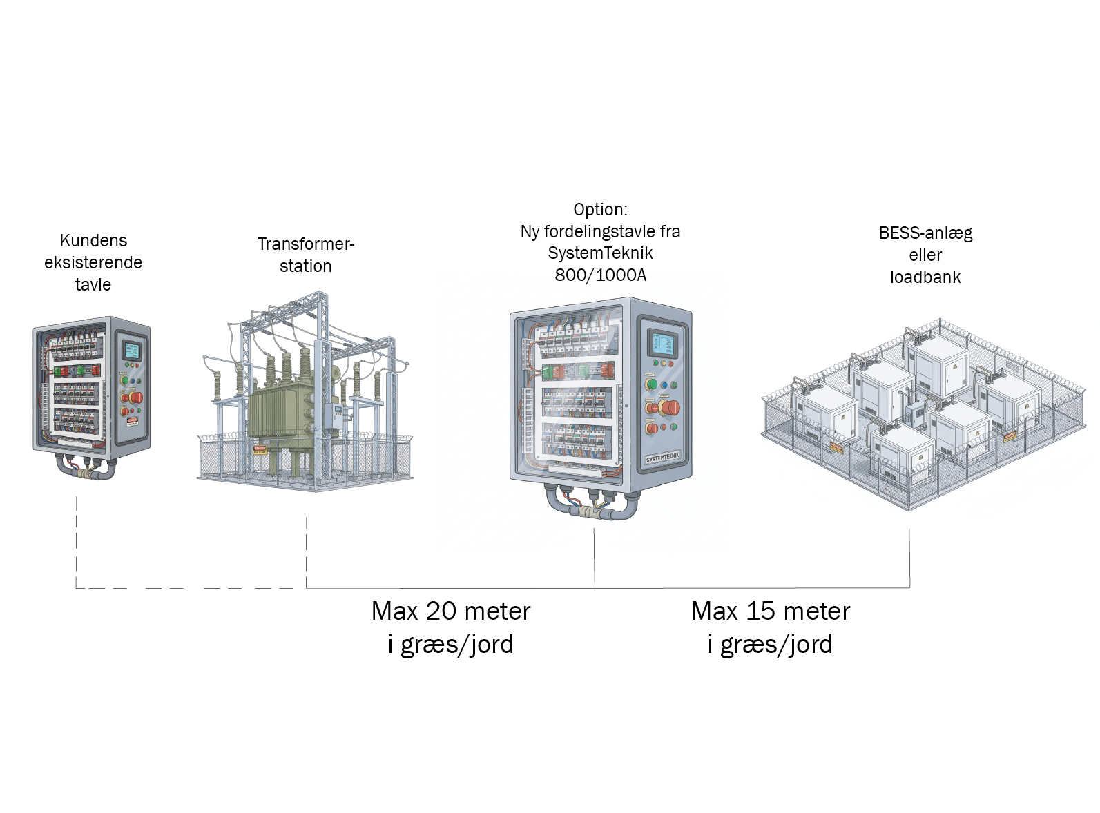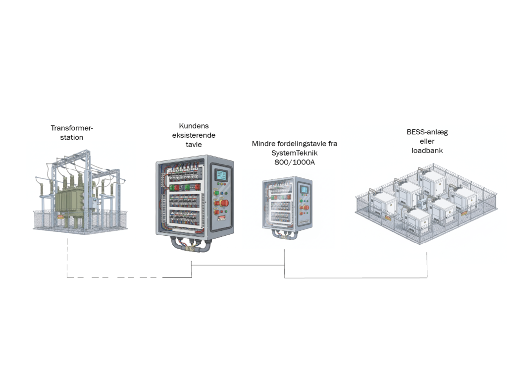 Din eksisterende tavle er stadig robust nok til at få koblet en mindre SystemTeknik fordelingstavle på, der kan lede strømmen over til BESS-anlægget eller Loadbanken.